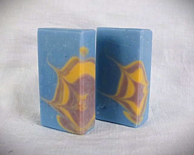 Ingrédients : Huile de tournesol oléique Beurre de coco Huile de colza Beurre de karité Eau Soude Huile essentielle de lavandin super Argile blanche Oxydes jaune et bleu Poudre de racine de Manjishta